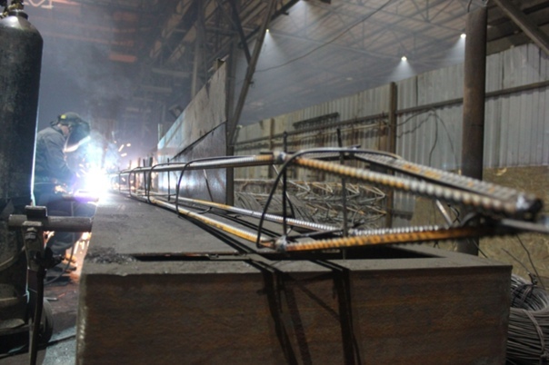 —Арматурные каркасы погружаются так, чтобы зазор от бортов составлял около 3 – 5 сантиметров, бетон мог полностью покрыть металл (за исключением петель);